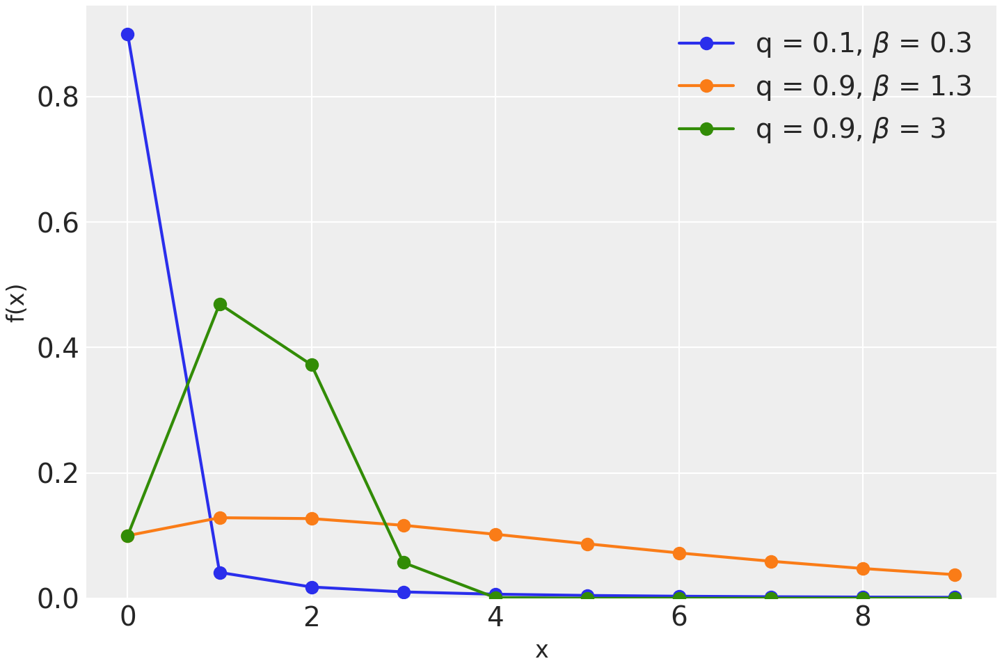 \[f(x \mid q, \beta) = q^{x^{\beta}} - q^{(x + 1)^{\beta}}\](